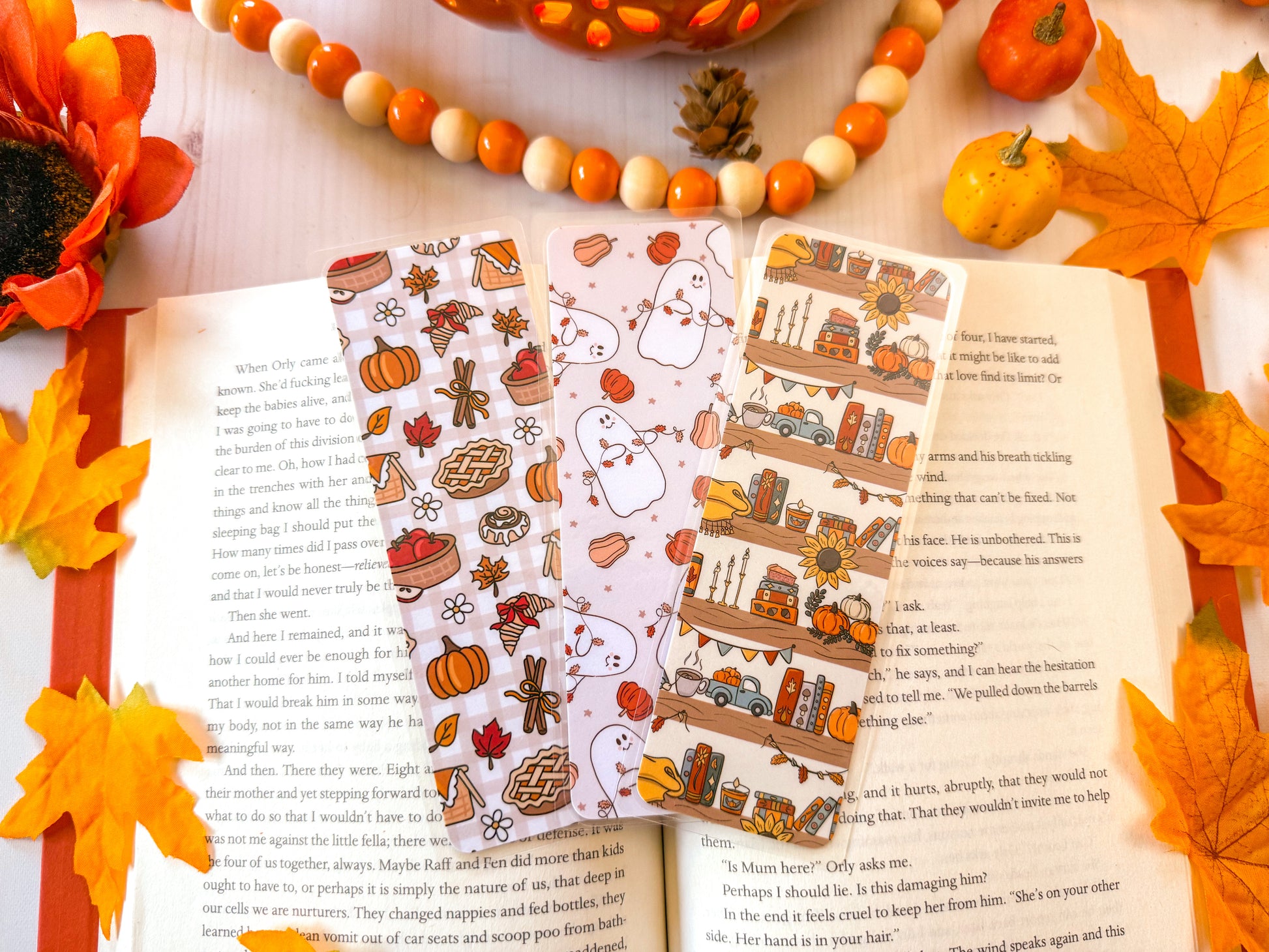 Pumpkins & Pies Bookmark – Covered in pumpkins, fall leaves, pies, and warm autumn treats, this design is a must-have for cozy fall reading sessions.