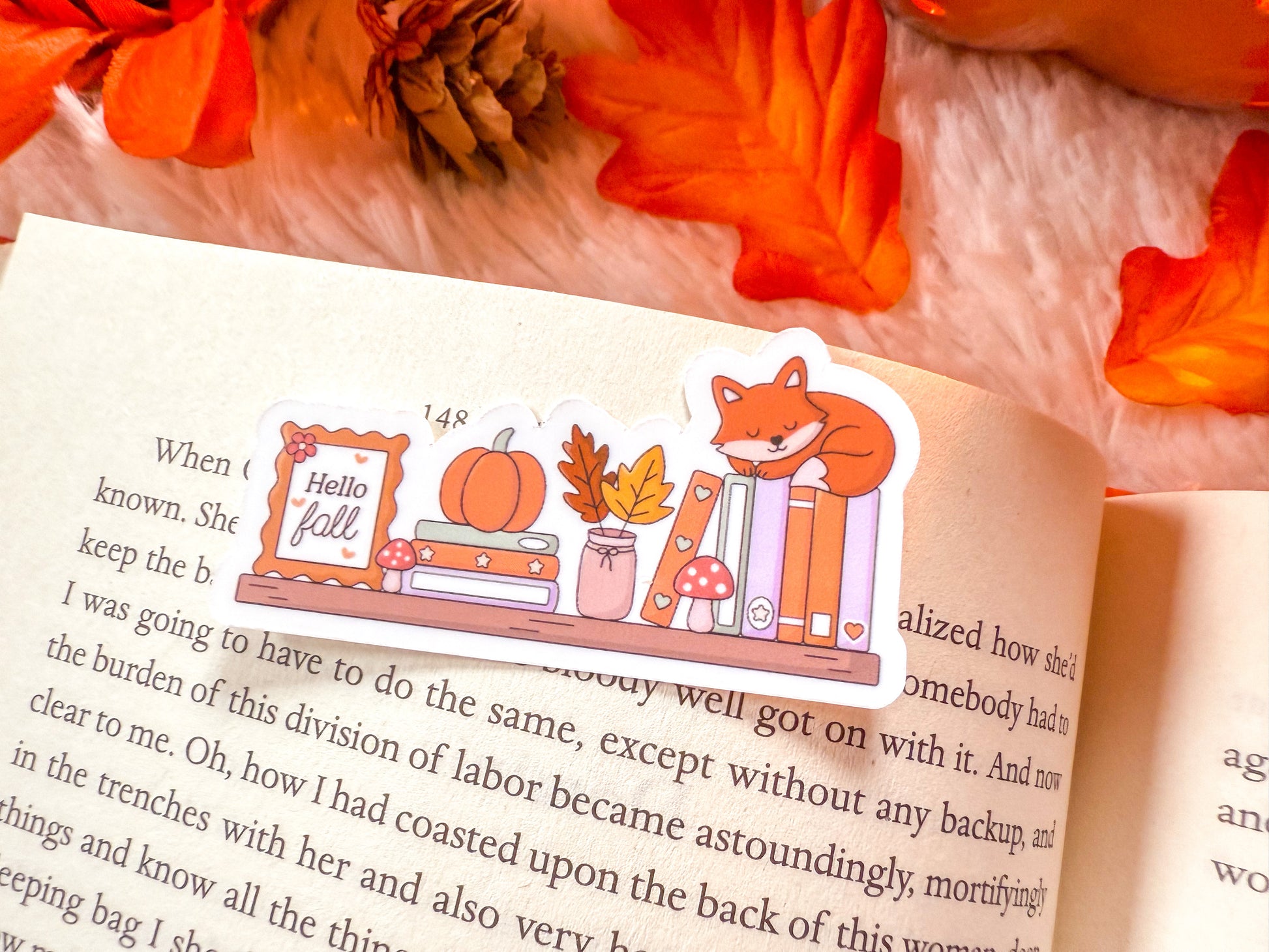 Hello Fall Cozy Fox Bookshelf Sticker
