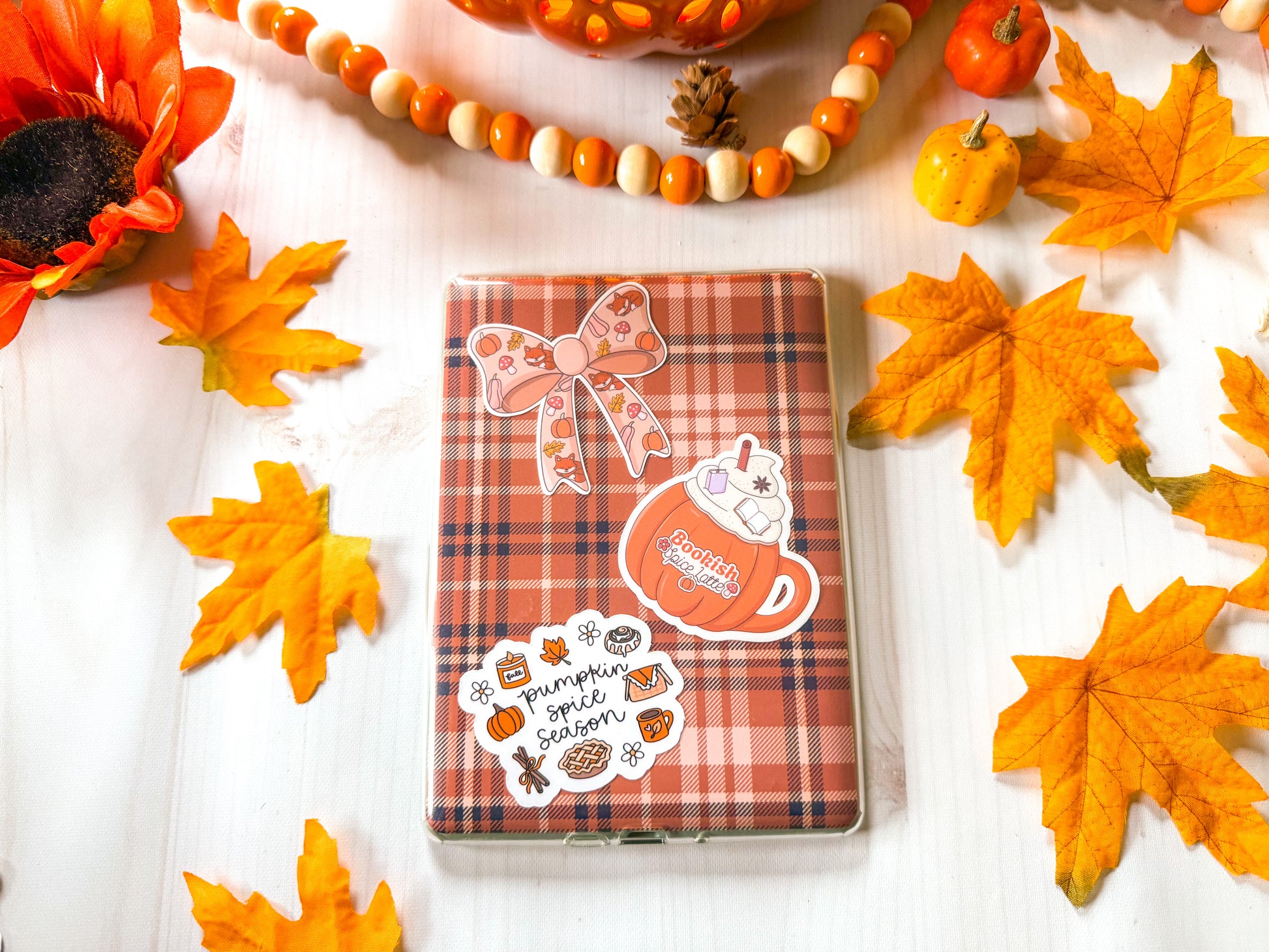 Celebrate your love for autumn with this Pumpkin Spice Season sticker, the ultimate accessory for book lovers and fall enthusiasts. This cozy fall sticker features pumpkins, lattes, pies, and books; everything that makes pumpkin spice season the best season. Perfect for decorating your Kindle, laptop, water bottle, planner, or book journal, this bookish sticker will instantly bring warm autumn vibes wherever you place it.